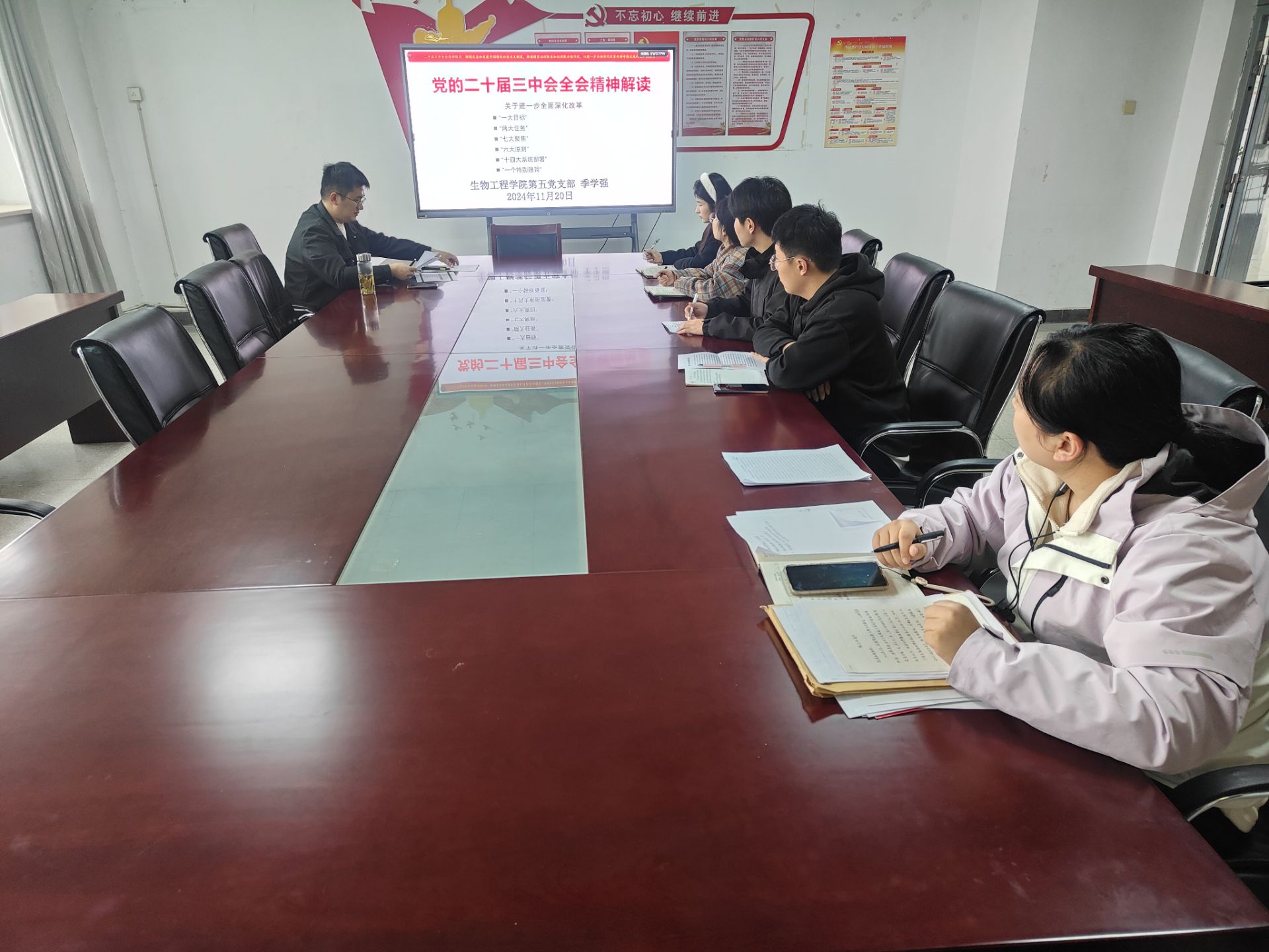 为深入学习贯彻党的二十届三中全会精神,全面落实立德树人根本任务,2024年11月20日下午,KY开元集团官网入口第五党支部书记季学强在支部开展了“党的二十届三中全会精神解读”的专题党课,支部全体党员参与学习。