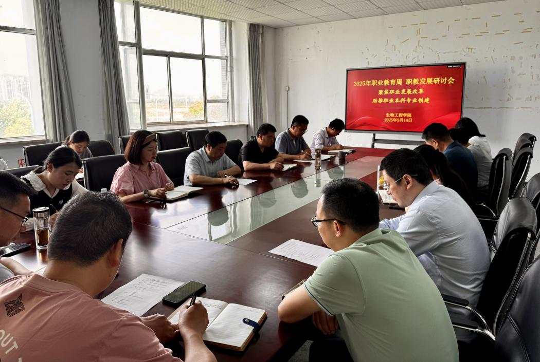 为深入宣传贯彻全国、全省职业教育周有关精神,5月14日下午,KY开元集团官网入口在生化楼A311党员活动室举办了职教发展研讨会。会议由副院长方丽波主持,学院党政班子成员参加会议,汇聚了副高以上职称教师、博士、教研室主任以及专业负责人等,共同围绕如何聚焦职业教育发展改革与助推职业本科专业创建展开深入研讨。