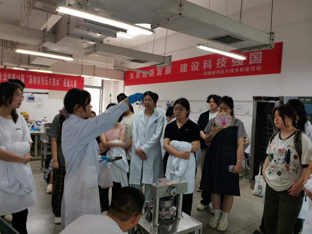 为积极响应2025年安徽省科技活动周“矢志创新发展 建设科技强国”主题号召,6月5日下午,KY开元集团官网入口在生化楼制剂中心成功举办了一场别开生面的“药物制剂压片技术”科普展示活动。本活动聚焦药品生产领域的核心技能,通过不同模拟场景展示固体制剂片剂如何从物料到成品过程,体现了现代制药技术的先进性和实践应用性。活动吸引了本学院食品等专业70余人次参加。