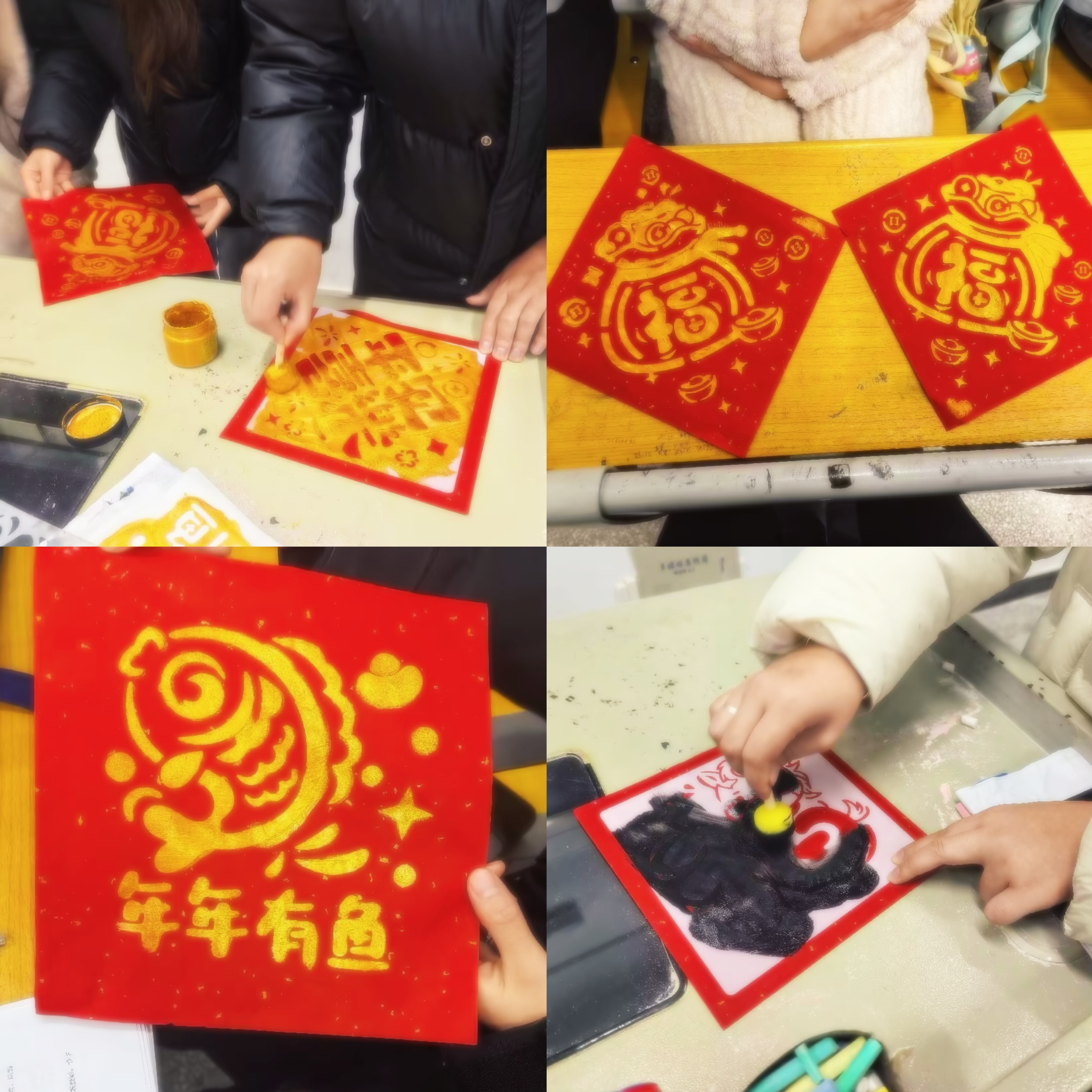 活动设置“新年愿望墙”与“福字拓印”两大特色环节。在“新年愿望墙”环节,同学们在精美的卡片上执笔抒怀,将学习进步的目标、成长蜕变的期许、情感生活的愿景凝于笔端,一字一句皆是青春心声的真挚流露;“福字拓印”环节中,同学们动手实践,将一个个兼具艺术之美和良好祝愿的“福”字拓印到宣纸上,在宣纸与印泥的交融间感受传统文化的独特魅力。活动结束后,承载着美好祝愿的愿望卡片与福字拓印作品,被精心布置在各班教室与宿舍公共区域,成为装点校园的一道独具温度的文化风景线。