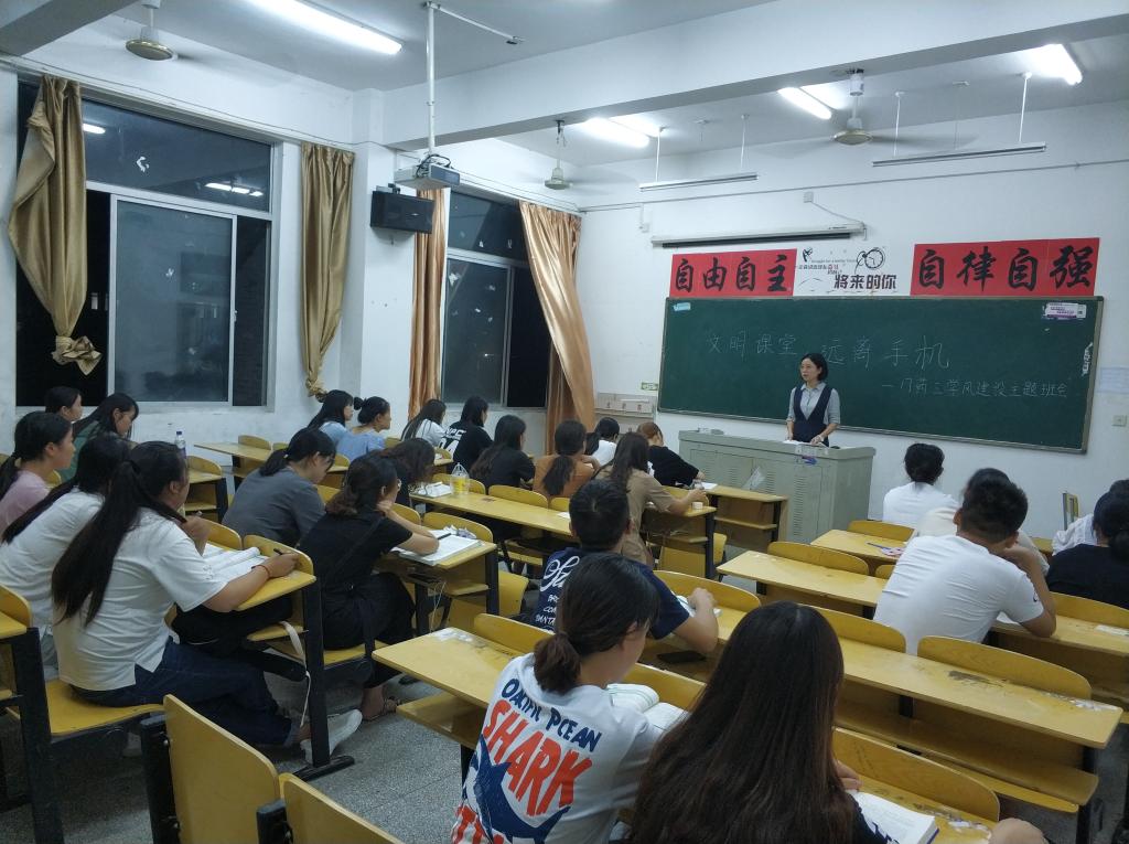 9月5日晚,各班主任老师在班级及时召开“文明课堂,远离手机”的主题班会,对本次学风建设活动进行宣传、布置,并组织学生签订承诺书。各班级活动形式多样,活动内容深刻,班主任老师积极参与,活动引起同学们的强烈共鸣,更加深刻地意识到过度使用手机给学习、生活带来的危害。