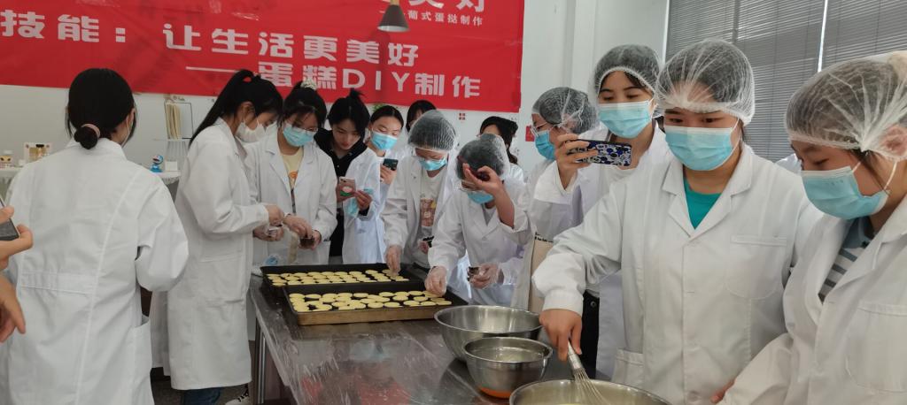 为弘扬劳动光荣、技能宝贵、创造伟大的时代风尚,食品专业积配合校、院两级的号召,于5月9日-12日,在校级创业基地——魔幻烘焙坊开展DIY蛋糕制作职教周活动。热爱烘焙的师生在郑学斌老师和许睿老师的带领下来到了魔幻烘焙坊参观学习,动手体验蛋糕制作流程,累计150余人次。