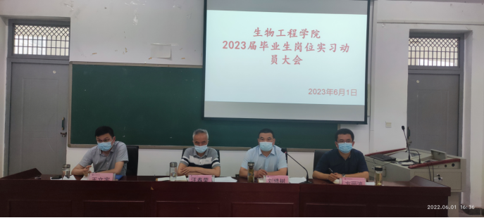 2022年6月1日下午3:30,KY开元集团官网入口在生化楼A305召开2023届岗位实习动员大会。为避免疫情期间聚集,此次会议采用线上线下结合的方式进行。会议由学院党总支书记汪春荣主持,到现场参会的有学院院长刘修树、副院长方丽波、王文宇老师、各实习点组长及各班班长学委,其他未到现场的2023届岗位实习生通过钉钉线上观看。