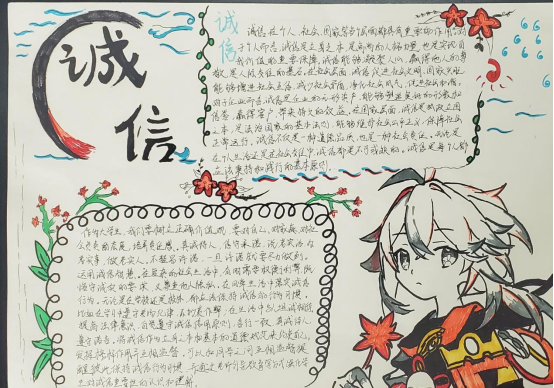 活动五:“诚信之笔,绘制青春”诚信手抄报大赛。