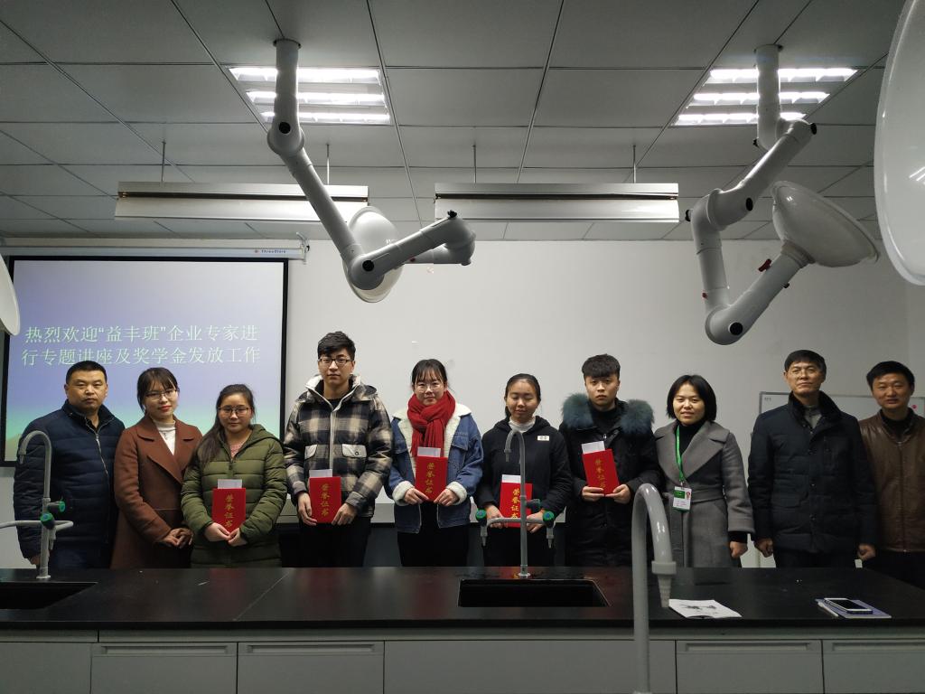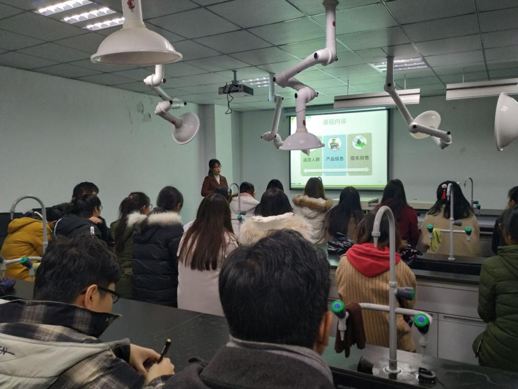 依据计划,2018年12月26日下午在生化楼B310教室进行益丰订单班奖学金颁奖及专业知识讲座,由上海益丰连锁大药房培训部主管周旋进行《人体健康与营养》专题讲座,内容包括什么是健康、人体必需的七大营养素和功能、不同人群健康问题、案例分享等。