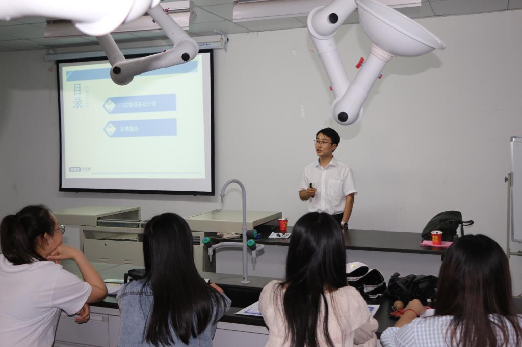 依据计划,当日在生化楼B310教室进行了专业知识讲座。张持浩进行了题为《连锁药房的门店管理》专题讲座,内容包括门店管理职责、流程、角色转变及沟通技巧亲情服务等。学生课堂上认真记录笔记,并与教师进行岗位角色互动,较好地拓展了药学服务知识。