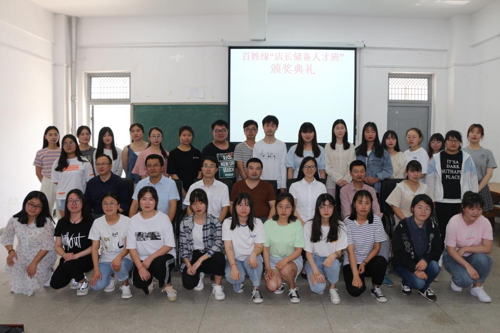 为了进一步推动人才培养改革,利用校企双方优势资源,落实校企合作协议,我院与知名企业安徽百姓缘大药房连锁有限公司于2018年合作首届“店长储备人才班”,人才培养方案引入企业文化、职业素养、岗位技能等企业元素,实现学生从入学到实习就业一体化的订单培养模式。日前,在生化楼A305多功能教室,安徽百姓缘大药房连锁有限公司培训部部长张持浩、人力资源部部长盛雅玲,学院副院长刘修树及订单班主要负责人共同进行“店长储备人才班”奖学金颁奖、专题讲座等工作。