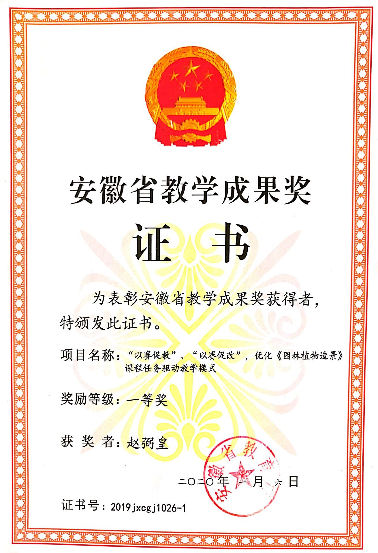 2020年赵弼皇团队获安徽省教学成果奖一等奖