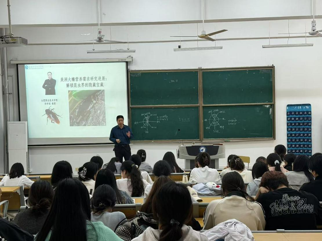 90余名学生齐聚一堂,聆听合肥职业技术学院郑学斌教授带来的昆虫研究领域前沿分享。