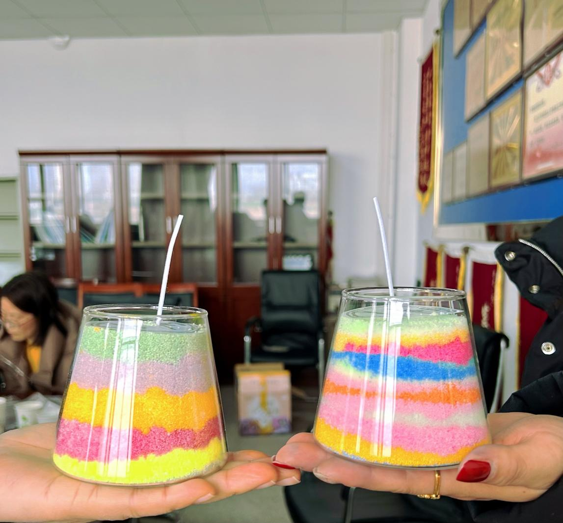 随后开展了女职工手工制作活动。大家充分发挥自己的想象力和创造力,巧手翻飞,将一朵朵干花点缀在团扇上,用专注和耐心描绘出一幅幅精美绝伦的图画,在一扇扇清风中表现女性雅韵。在制作沙画香薰蜡烛时,搅拌调色、固定蜡芯、滴入精油、叠加颜色、静置散香,一杯杯风景如画般的香薰蜡烛一气呵成。