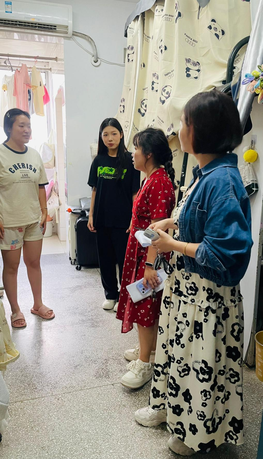 查寝过程中,辅导员老师与同学们进行了亲切的交流,询问了同学们的健康和学习状况,并提醒同学们天气降温,是流感等传染病的高发期,要适当增减衣物,多吃蔬菜水果,保护好自己的身体。