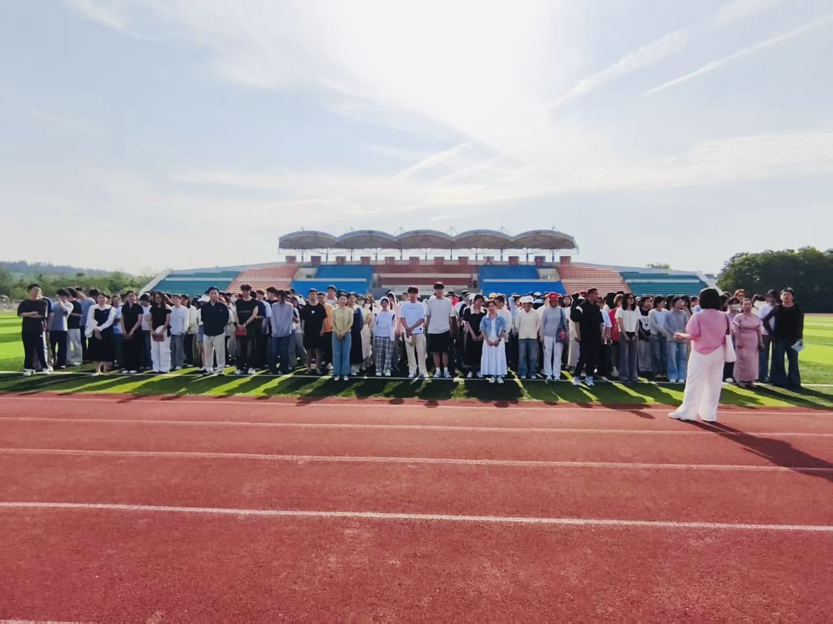 下午4点,随着地震警报响起,演练正式开始。辅导员转化成教室演练责任人,指挥学生快速抱头、闭眼,躲在各自课桌下或课桌旁,尽可能蜷曲身体,降低身体重心,并尽可能用书或者双手护住头部。解除“地震警报”信号发出后,辅导员打开教室前后门,组织学生按照紧急疏散路线有序撤离出教学楼,到达操场并进行清点人数。在疏散过程中,大家快速、有序撤离,没有出现拥挤、推搡、踩踏等意外情况。