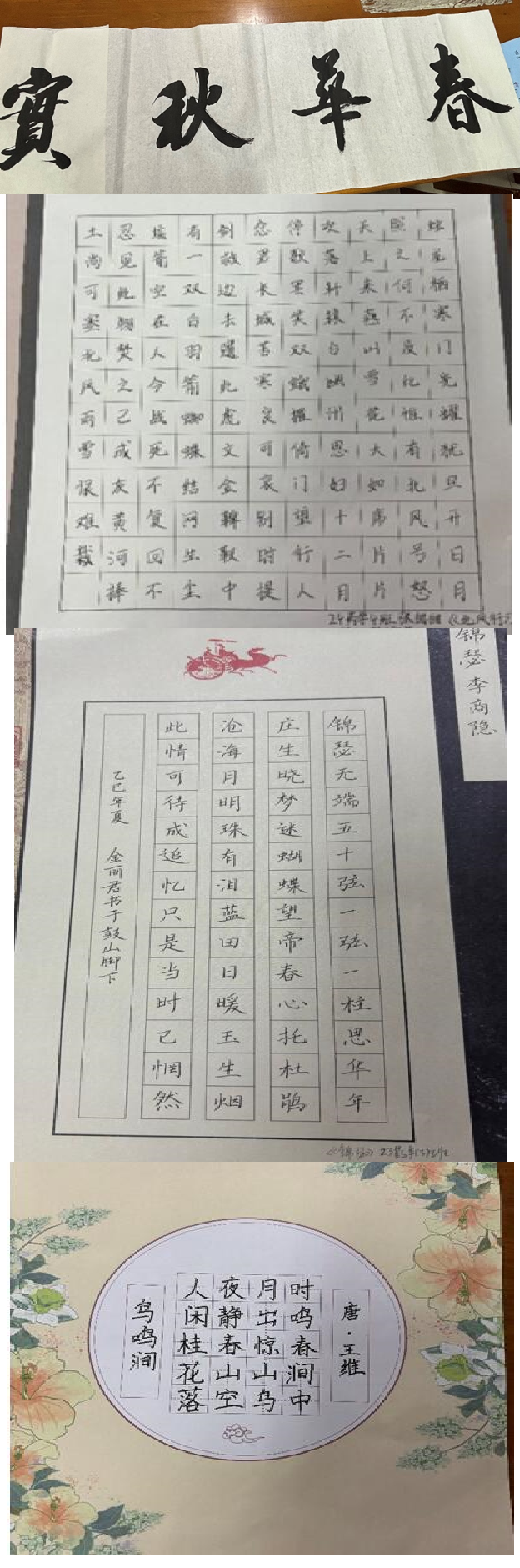 “书法写人生”活动中,同学们以笔会友,一幅幅书法作品或苍劲有力,又或清秀婉约,书法可以让我们在快节奏的学习中静下心来,也充分展现了传统书法艺术的魅力。