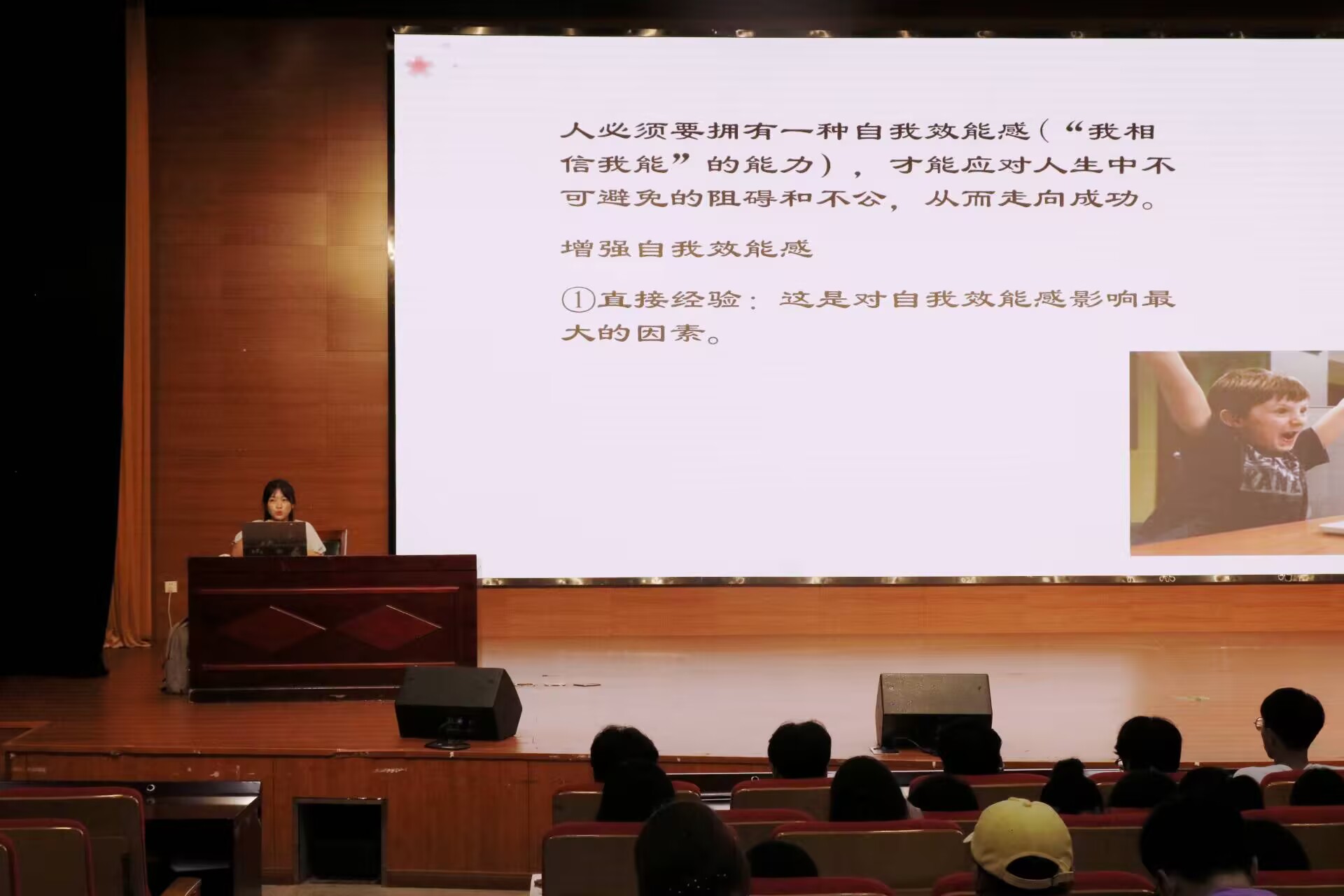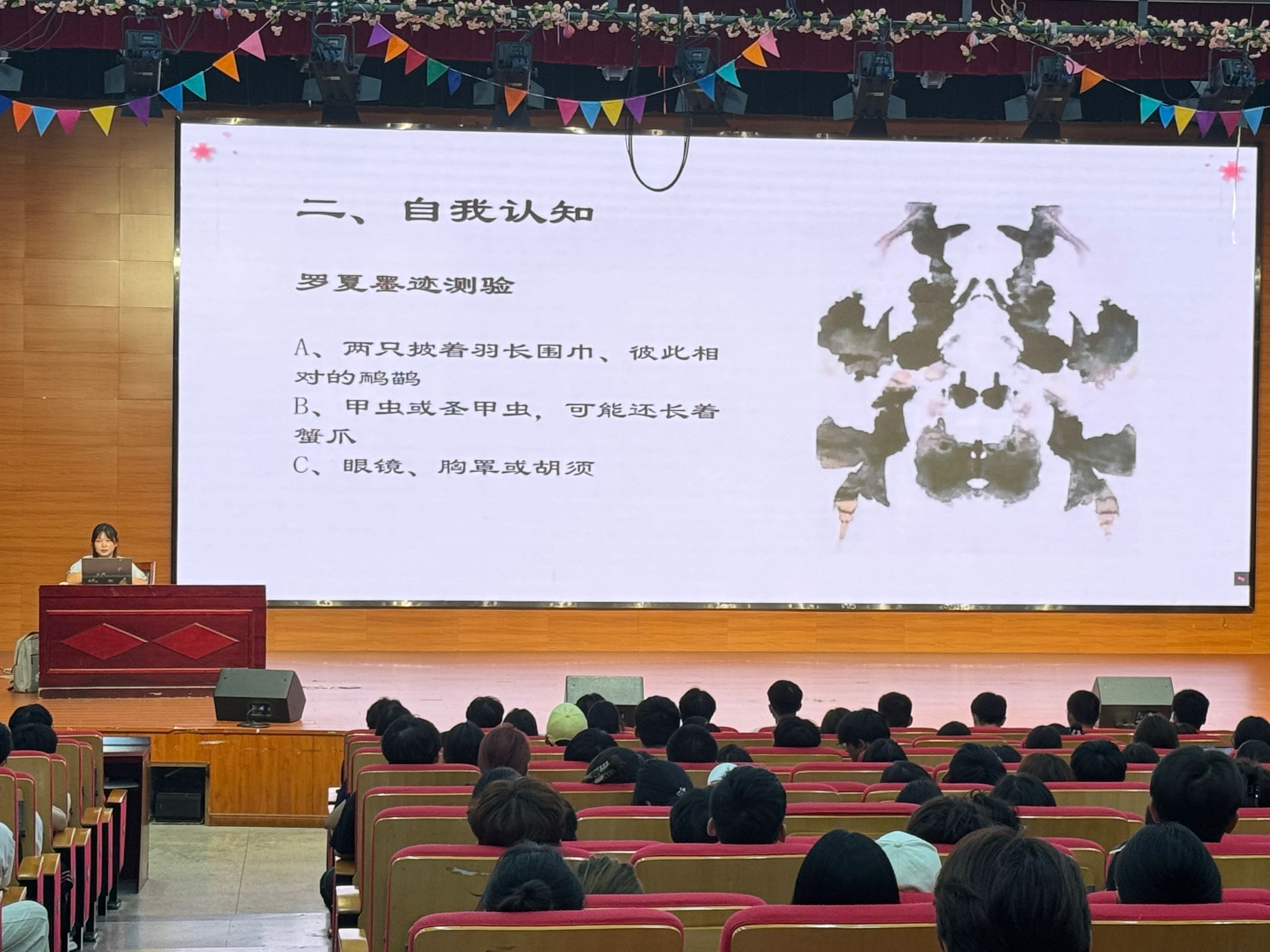 在环境适应方面,汪老师鼓励大家通过正念冥想、情绪日记等方式改善情绪,积极参与实践,拓宽视野。在自我认知方面,汪老师介绍了罗夏墨迹测验、MBTI等工具,帮助同学们多角度了解自己。她特别提到“自我效能感”的培养,鼓励同学们通过直接经验、替代经验、言语劝说和积极情绪管理等方式增强自信。在人际交往方面,汪老师讲解了非暴力沟通技巧,提倡以“我”开头的表达方式,学会倾听与共情,避免过度归因与冲突逃避。在学业实践方面,她建议同学们制定计划、寻求帮助、培养“成长型思维”。讲座最后,汪老师强调:“大学只是另一场旅途的起点,求助是勇者的行为,更是智者的行为。”她介绍了学校心理健康教育指导中心,鼓励同学们在需要时主动寻求专业帮助。