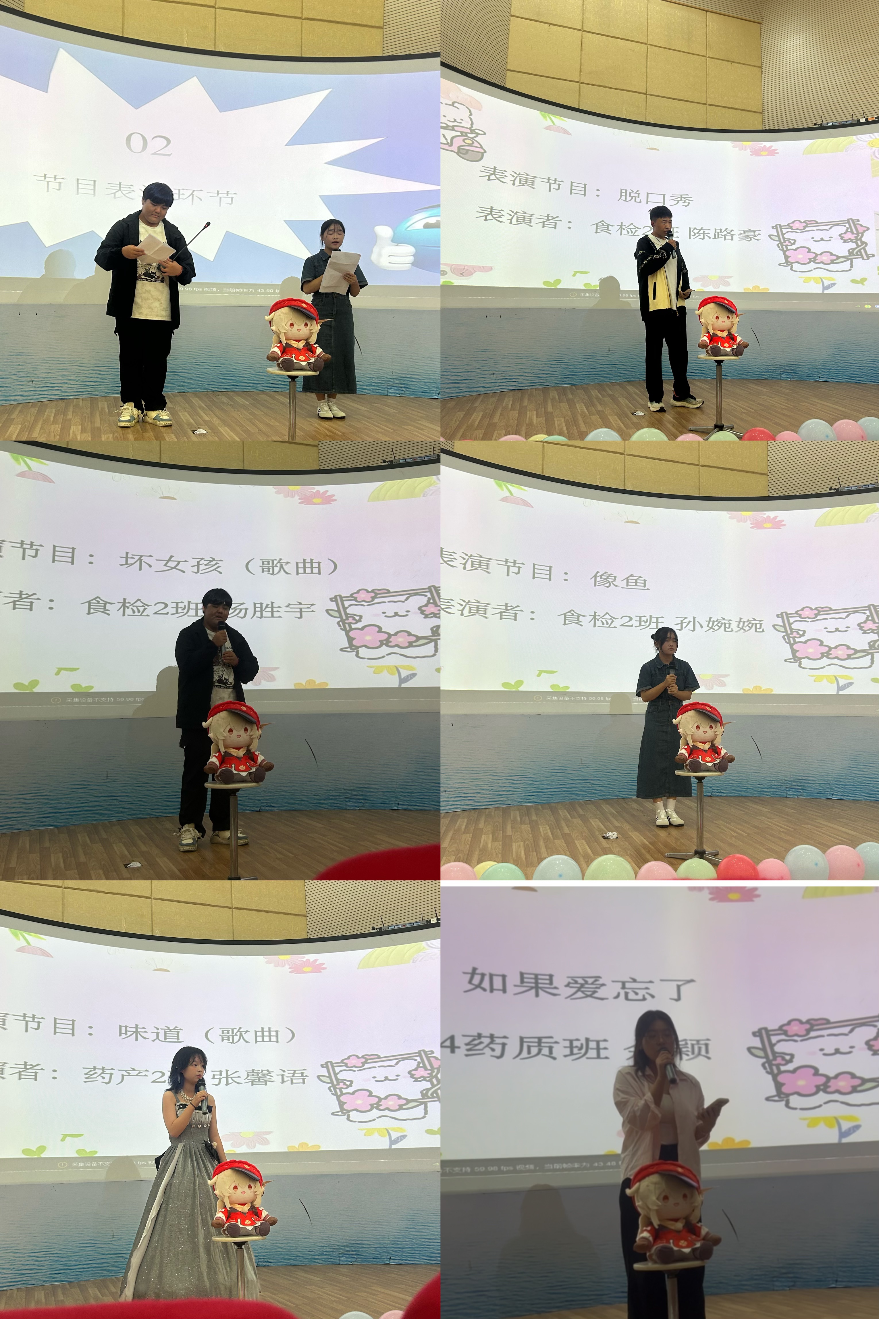 活动在精彩节目里热闹开场。率先登场的杨胜宇,一首《坏女孩》用富有感染力的嗓音瞬间点燃全场,让大家沉浸在热烈氛围中。接着张馨语深情演唱《味道》,打动人心。陈路豪的脱口秀成了焦点,幽默语言和校园段子让全场笑声、掌声不断,把气氛一次次推向高潮。随后孙婉婉以温柔歌声演绎《像鱼》,细腻旋律传递青春情感。最后余颖唱响《如果爱忘了》,唱出青春回忆与遗憾。四位同学的精彩演唱,让现场沉浸在浪漫音乐海洋,众人纷纷陶醉。