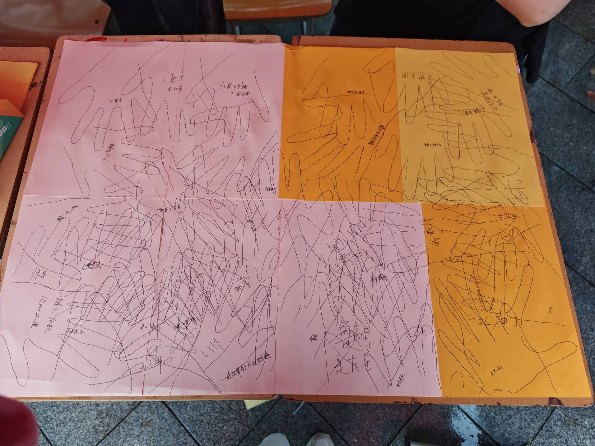 大学生活动中心广场前的 情绪小怪兽桌游吸引了众多同学排队参与。参与者通过掷骰子触发任务,如踩到红色格子需模仿愤怒表情并分享调节方法,蓝色格子则要讲述治愈瞬间。不远处的 请与我击掌互动墙前同样热闹,同学们画下彩色手掌并写下寄语,接力创作,画布很快布满掌印与温暖话语。