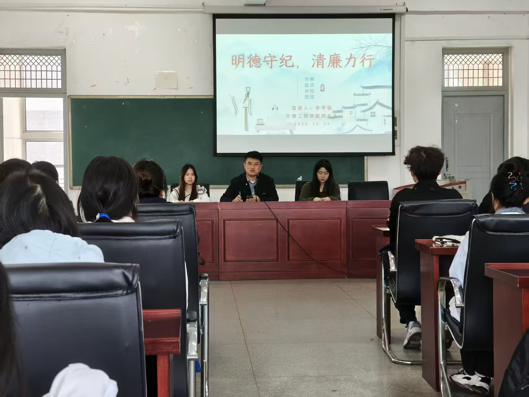 为了深入推进廉洁文化建设,增强我校学生的廉洁意识和自律精神,KY开元集团官网入口团总支20251024日在生化楼A305会议室开展了明德守纪,清廉力行”主题团课。本次团课由院团总支书记季学强老师主讲,所有2025年下半年入团积极分子参加