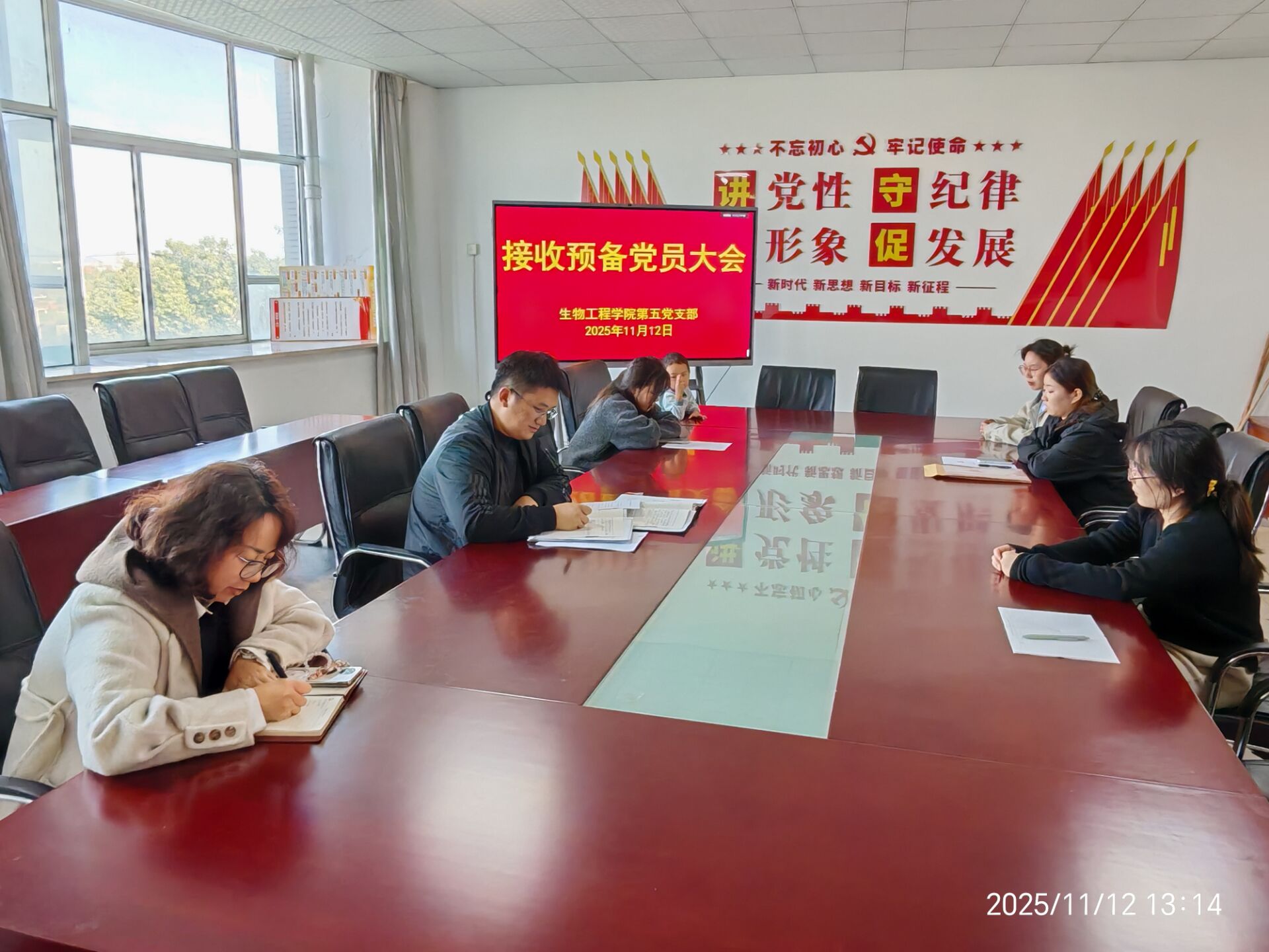 KY开元集团官网入口第五党支部于20251112日在生化楼A311会议室召开接收预备党员大会,KY开元集团官网入口第五党支部全体党员及发展对象汪涵同志参加本次会议。