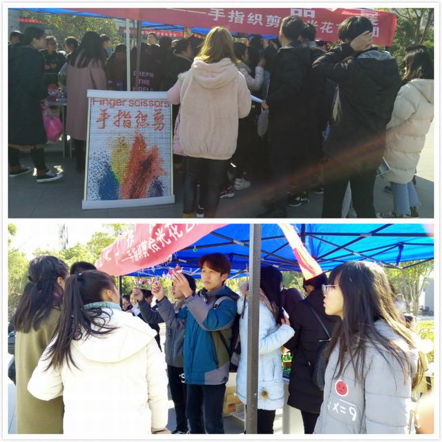 为了增添节日喜庆气氛,丰富同学们的校园文化生活,培养学生动手、动脑能力,践行工匠精神,12月25日中午,我院手指织剪协会联合拾光花艺协会于一食堂小广场举行手工花艺作品展,给我校师生带来了一场手工艺术品的视觉盛宴。