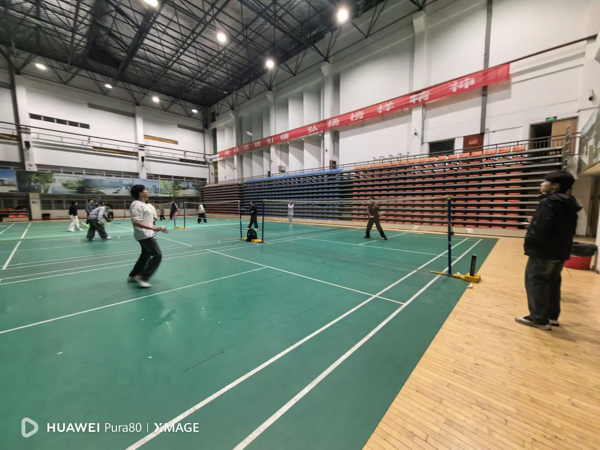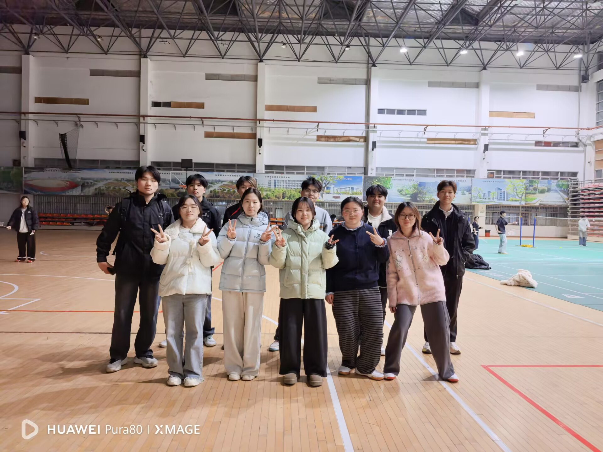 为丰富同学们的课余文化生活,以体育活动凝聚集体力量、涵养青年品格,12月25日,25食检2班和25药产2班联合举办的羽毛球联谊赛在体育馆二楼热烈举行,两班同学与辅导员共同参与,现场气氛活跃。