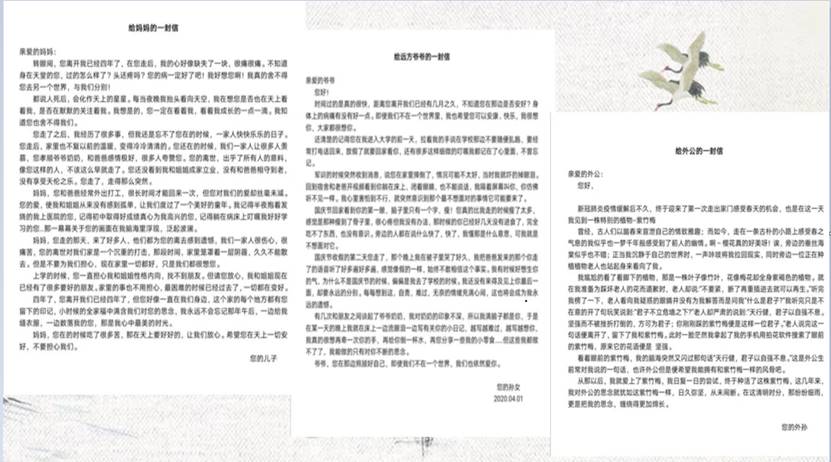 世人都说人死了之后,会以另外一种方式陪伴在我们身边——在我们心里,在我们的思念中。一封封亲手制作的家书,更是凝结了千言万绪。让我们一起来来欣赏同学们所写家书,感受字里行间的温情。