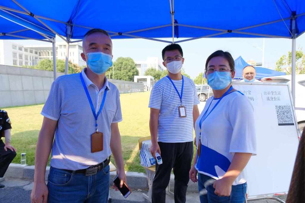 演练现场,学生入校时按照地贴位置间隔1米排队等候,消毒、测体温;出示入校审批表、刷“安康验证码”、更换口罩;登记入校、领取住宿证明,并由志愿者引导,按照学校指定线路到学生公寓。进公寓环节再次消毒、体温测量、验码、登记进入公寓。演练过程中若学生体温检测或健康码核验异常,将由专人将其带至临时观察区进行复查,并依据学校疫情防控工作方案和应急处置方案迅速采取应对措施。