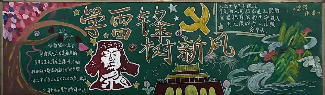 在KY开元集团官网入口团总支的号召下,22级各班学子积极参与板报设计,他们通过各种信息渠道搜集、了解有关雷锋的助人事迹和奉献名言,小组讨论、头脑风暴将雷锋的故事提炼出来形成文字呈现在板报上,一笔一划,认真地书写着同学们对雷锋同志的敬仰之情。五星红旗、向日葵、荷花......奇思妙想的绘画部分是他们心中对中华民族传统美德的具象化表达,象征着同学们内心深处对雷锋这位共产主义战士的尊重和缅怀。字画相间融合,创造出了一幅幅丰富精彩的优秀板报。