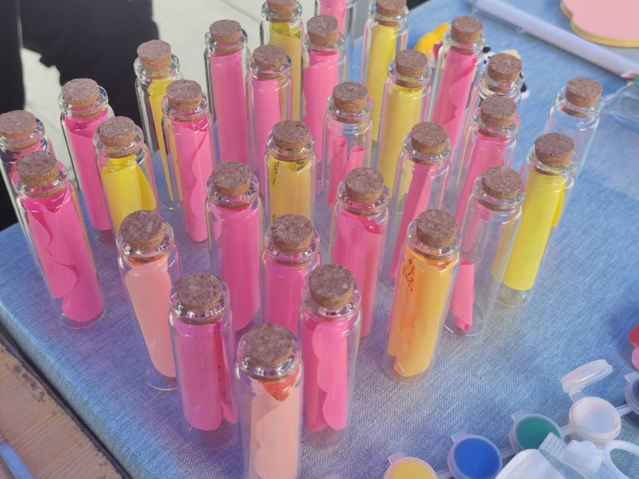 游园会由3个小活动组成,包括“拯救情绪大作战”、“心情涂鸦”和“心声漂流瓶”。志愿者就位以后,游园会正式开始。“拯救情绪大作战”通过套中写有情绪词的障碍物来获取表演机会,并获得奖品。套圈以它独特的魅力吸引了来往同学的目光,越来越多的同学加入进来,只见他们纷纷瞄准目标,为了心仪的奖品投出手中的一圈。活动现场的氛围迅速火热起来。“心情涂鸦”广受女生们的青睐,同时也吸引了其他学院的同学参加。挑好自己想涂的石膏娃娃,调制自己喜欢的颜色,就可以开始自由创作了。同学们在上色的过程中放松了心情,在专注中“涂”到了快乐。“心声漂流瓶”旨在鼓励同学们将自己的烦恼写下来放入漂流瓶中,其他同学也可以随机挑选一个瓶子进行回复,帮助他人纾解忧愁,在助人的过程中体验积极的情绪。
