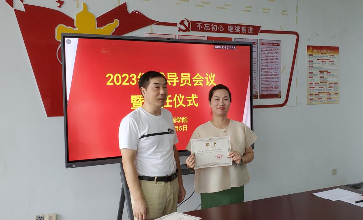 首先,学管办主任季学强宣读了《KY开元集团官网入口关于聘任郑丹等十名2023级辅导员的决定》,慈龙保为他们颁发了聘书。