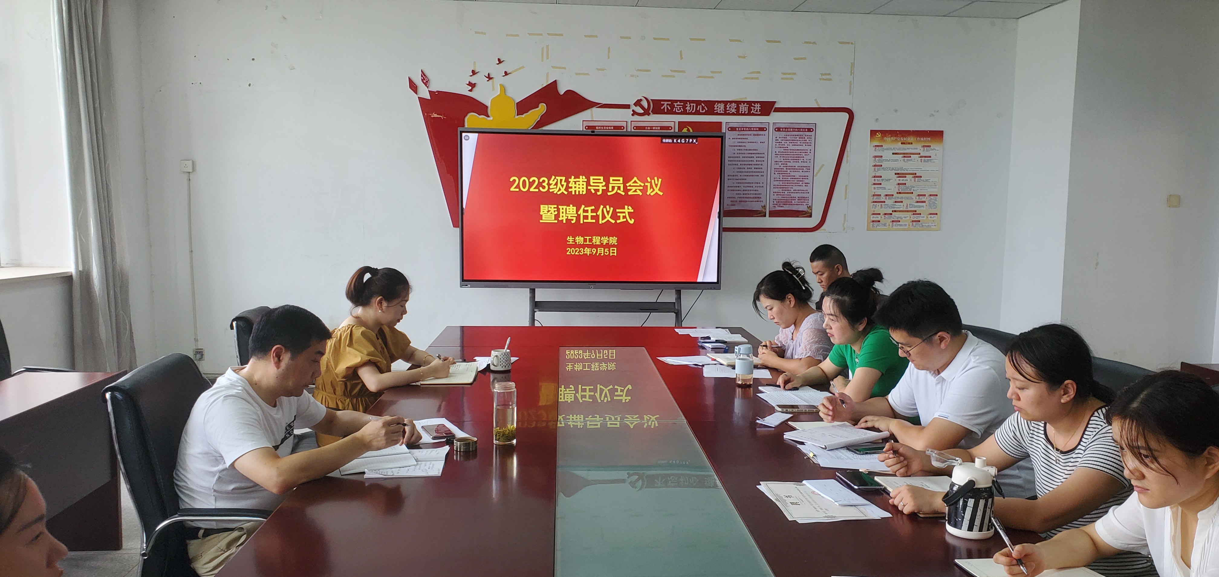 9月5日下午,KY开元集团官网入口在生化楼A311会议室举行2023级辅导员聘任仪式暨新生报到工作会议。会议由学院党总支副书记周婷主持,党总支副书记(主持工作)慈龙保出席并讲话,全体学生管理工作人员、23级辅导员参会。
