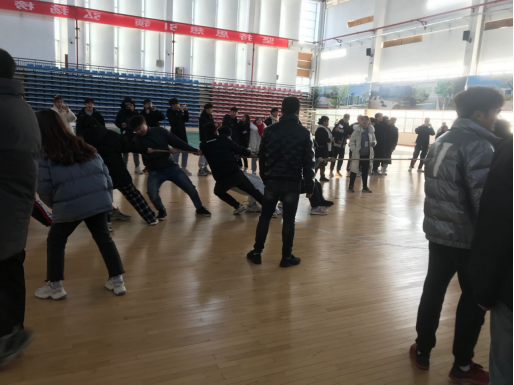 下午一点钟,比赛正式开始,首先进行的项目是趣味拔河。选手们个个铆足了劲,同学们的呐喊助威声此起彼伏。