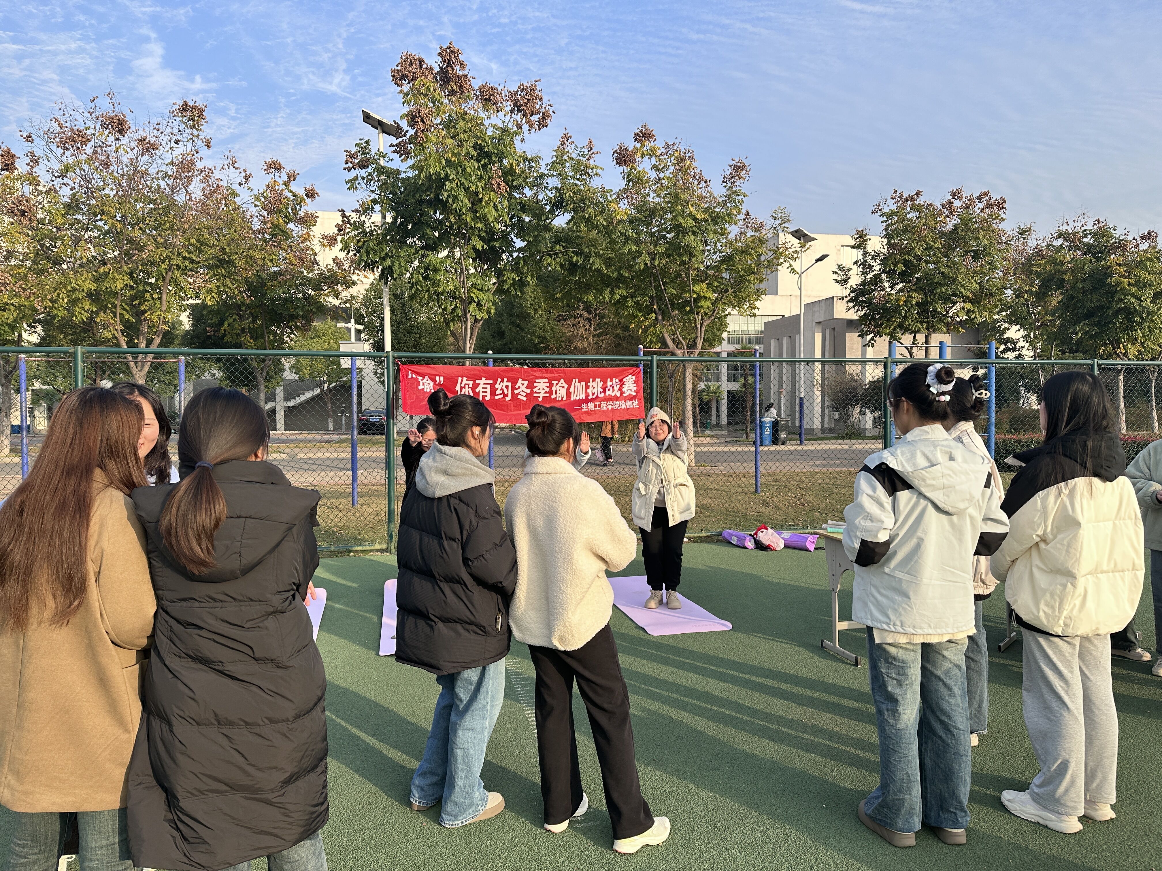 为倡导健康生活,展示瑜伽魅力,活跃大学生课余文化生活,营造健康、和谐的校园氛围,11月15日下午,KY开元集团官网入口“虞美人”瑜伽社团在鼓山校区田径场举办“‘瑜’你有约”冬季瑜伽挑战赛。