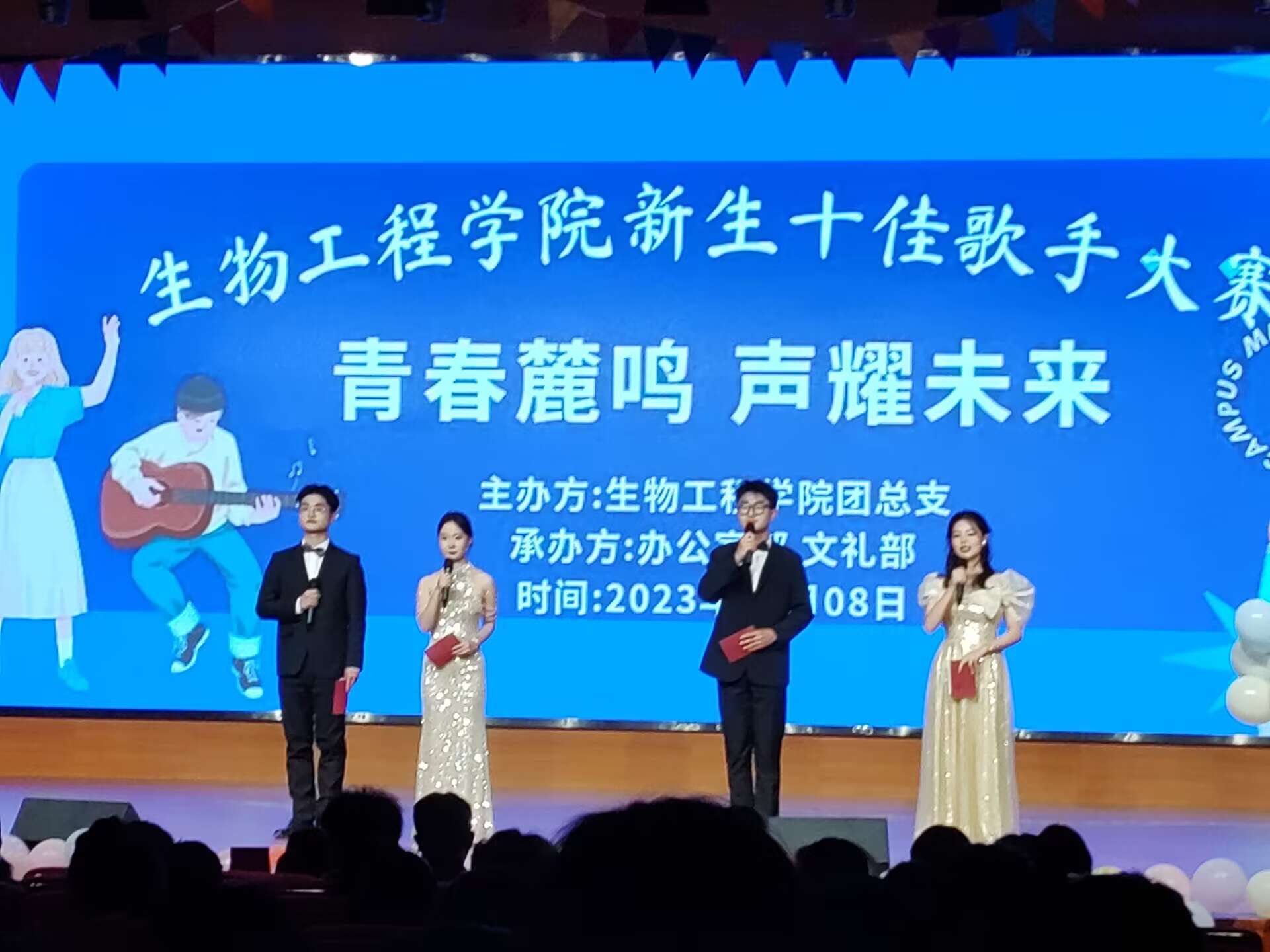 当晚,本次大赛的参赛选手们精心准备、胸有成竹,一首首或优美婉转、或热情奔放的歌曲一次次将比赛推向顶点,优美的歌声更是迎来了观众发自内心的掌声。为了保证比赛的公平公正评委们将根据选手们的音色、技巧、舞台表现力等多个方面进行打分。比赛还安排了表演节目和游戏环节,观众们不仅可以欣赏到精彩的表演,还可以参与到游戏互动环节中赢取小礼品。经过紧张的角逐,最终产生冠军:23园林二班陈熙睿,,亚军:23食检一班夏鹏,季军:23药产二班陈瑾。最佳台风奖:夏鹏,最佳人气奖:陈熙睿。