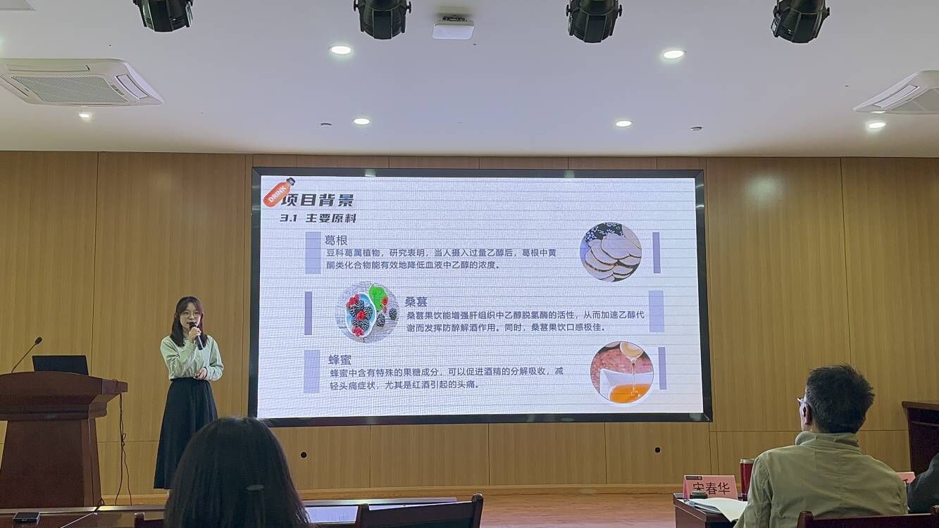 2024年4月17日下午,校团委主办的第十一届“挑战杯”合肥职业技术学院大学生创业计划竞赛决赛在汇心湖校区图书馆一楼报告厅举行,KY开元集团官网入口两个项目《 “莓” 你不行——石榴中提取的草莓保鲜剂》和《酒美乐——新型复合型解酒饮料》参加决赛。