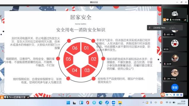 1月23日,必赢线路检测中心2020级工商管理专业召开寒假安全须知线上主题班会,此次班会由2020级工商管理2班团支书牛钰洁主持,辅导员贾晶晶到场,2020级工商管理专业全体同学参加。
