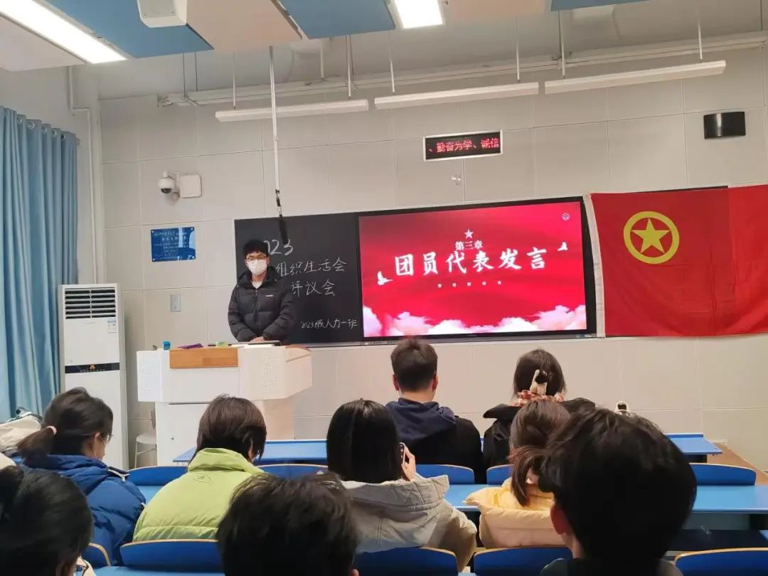 会议伊始,团支书宋泓霏向同学们讲述了团歌的历史,并带领全体团员齐唱团歌,调动了同学们的参与热情,提高了班级成员的凝聚力。紧接着,团支书汇报今年开展团员和青年主题教育实践活动情况,重点强调了学习贯彻习近平新时代中国特色社会主义思想情况和组织生活会准备情况。随后,团支书带领团员们通过学习教育、自我评价和组织评议相结合的方式,对各自的表现和作用发挥情况做出综合评价,全体团员积极参与,认真总结。最后,全体团员重温入党誓词,激发了团员时代感和责任感,时刻牢记自己作为新时代青年的历史使命,为中华民族的伟大复兴而努力奋斗。