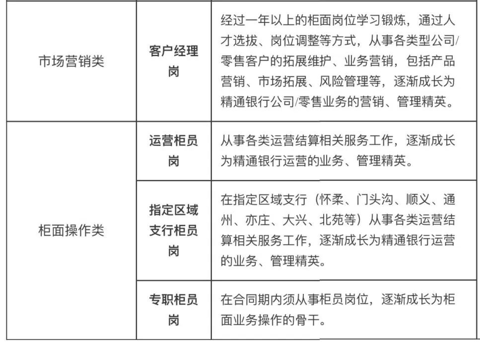 2024年校园招聘岗位分为金融科技类、市场营销类、柜面操作类共三大类岗位。岗位说明如下: