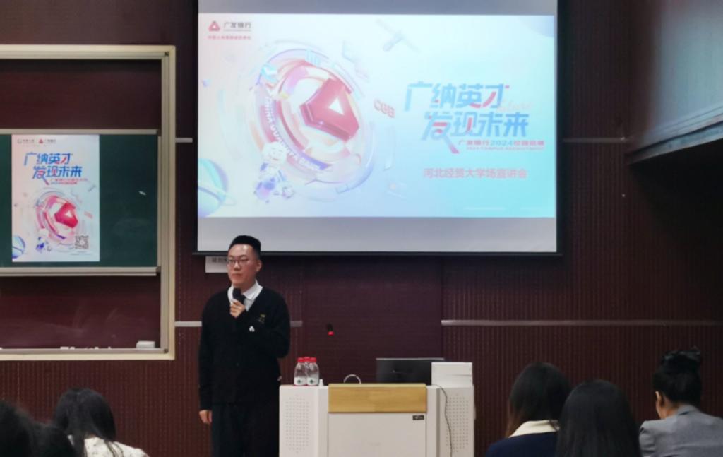 为实现人才精准对接,全力为2024届毕业生就业保驾护航,必赢线路检测中心于10月13日下午在MBA2教室举办广发银行石家庄分行校园招聘宣讲会。会议由宣讲人王兆鑫老师主讲,广发银行石家庄分行人力资源管理经理张洋、唐山分行零售银行部总经理张蕊以及部分应届毕业生参加。