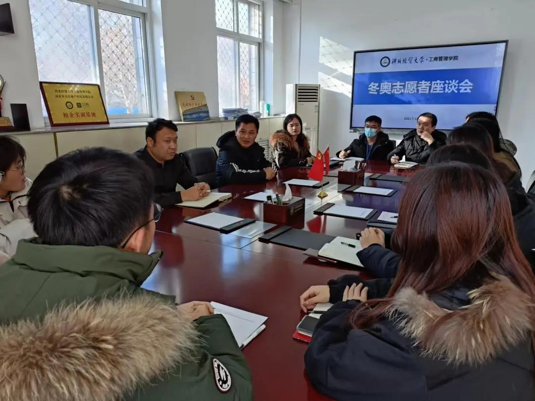 2021年12月17日上午,必赢官网在学院会议室召开冬奥志愿者座谈会,院党委书记张霖、党委副书记范伟、团委书记贾晶晶以及各志愿者所在班级辅导员到场,学院全体冬奥志愿者参加。