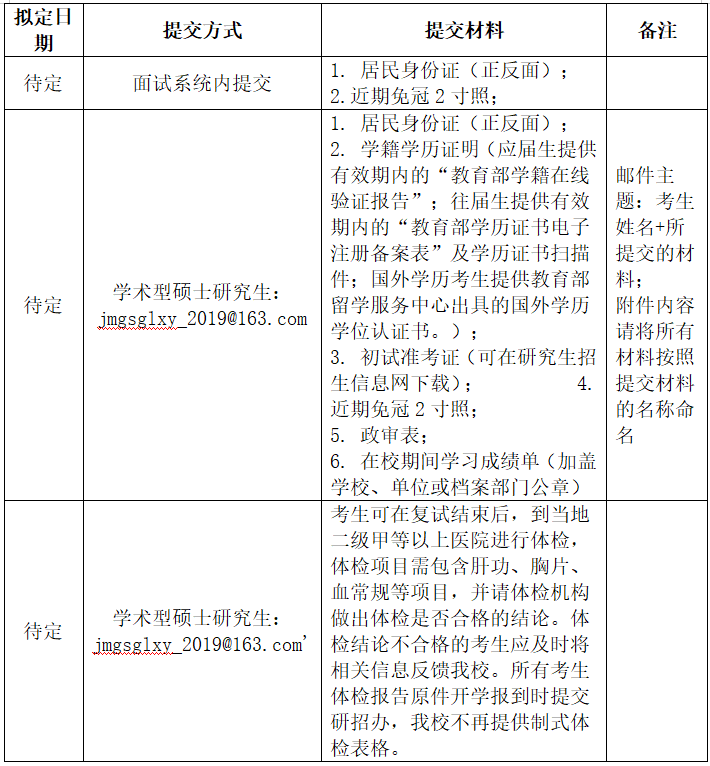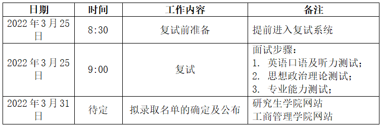 进入复试考生,需按时参加面试。缺考者取消复试录取资格。具体环节及规定如下:
