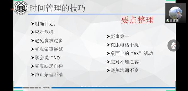 讲座伊始,王胜洲向同学们提出了关于加强时间管理的学习目标,从多方面说明了时间的重要性,让同学们认识到时间的价值。