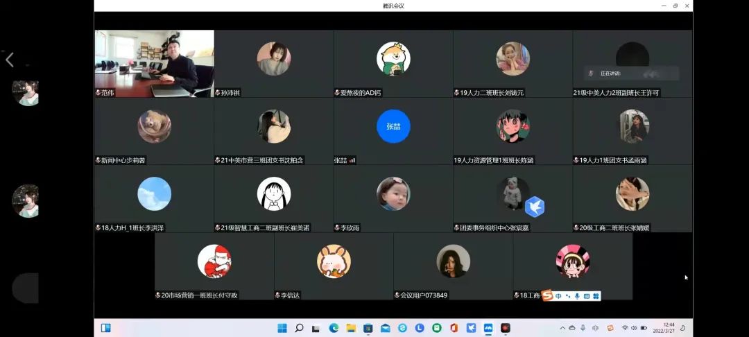3月27日中午,必赢官网通过腾讯会议线上召开“疫情防控工作推进会”,会议由必赢官网党委副书记范伟主持,各班辅导员、班长和团支书参加。