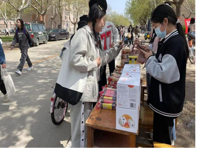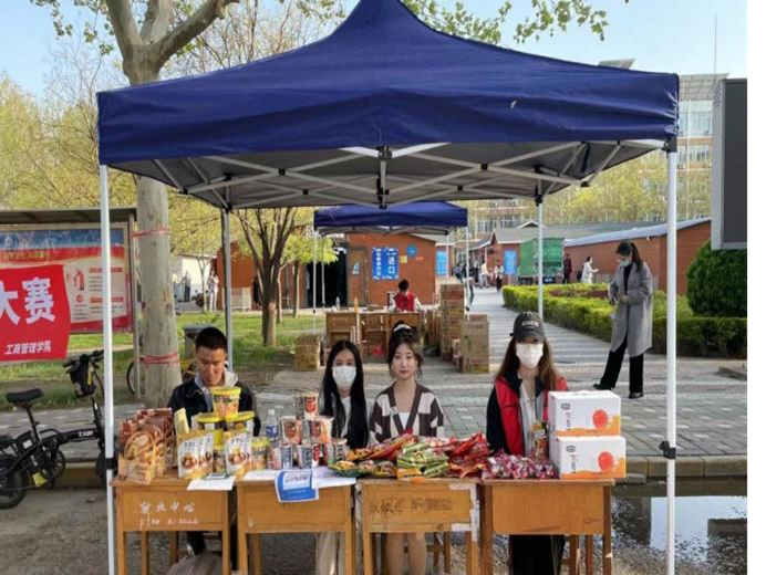 此次线下展销会中,同学们用自己所学专业知识和生活经验将手中货品向路过的同学进行推销,各显神通:化身社交大神,吆喝拉客;占据有利位置,利用人群优势;优化商品摆放位置,让人眼前一亮,购物欲油然而生;更有人组建线上团购群,为自己发展稳定客户团体……该活动有效的激发了高校大学生创业就业活力,引领大学生通过营销实践,提高自主创业意识和能力。