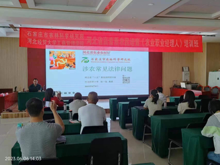 石家庄市农林科学研究院是农业农村部认定的首批“全国新型职业农民培育示范基地”,河北省农业厅首批认定的“河北省现代农业培训基地”。自2011年起,该院已连续12年承担“高素质农民培育”项目,累计培育各类新型职业农民、高素质农民3821人。本次培训班开班前,437必赢会员中心与石家庄市农林科学研究院签订了“三农人才”培养协议,双方将充分发挥“农商结合、院校合作”优势,定制开设专业精品课程,共同培育培养“三农人才”,为乡村振兴提供人才支撑。