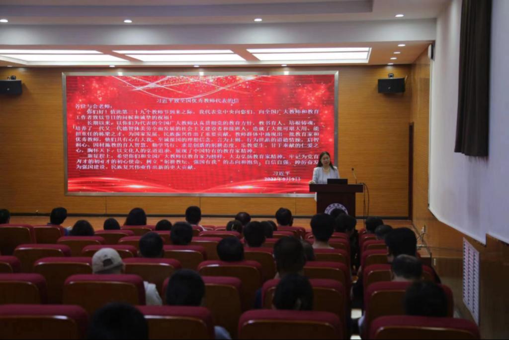 会议伊始,李桂荣结合本学期学校工作要点和学院工作计划,激励全院教职工要以更饱满的精神投入到新一轮教育教学审核评估工作中,全力迎接本科教育教学审核评估工作;要重视人才引进和青年博士培养力度,为学校事业发展和专业建设提供坚强保障。接下来,李桂荣带领全体教师重温了今年教师节前夕习近平总书记致全国优秀教师代表的信,号召全体教师向优秀教师学习,牢记为党育人、为国育才的初心使命,坚持立德树人,培根铸魂,为培养德智体美劳全面发展的社会主义建设者和接班人做出更大贡献。