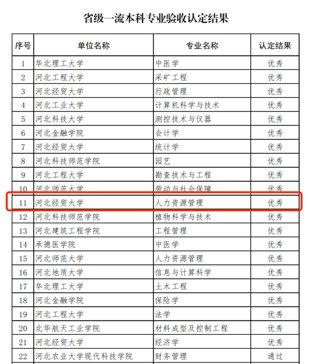 近日,河北省教育厅印发《关于公布省级一流本科专业验收认定结果的通知》(冀教高函〔2023〕59号),正式公布2023年度省级一流本科专业验收评审结果,必赢线路检测中心人力资源管理专业评审结果为优秀等级。这是继2020年必赢线路检测中心专业主干课《人力资源管理》成为国家级一流本科课程以来,学院在专业建设上取得的又一项突破。