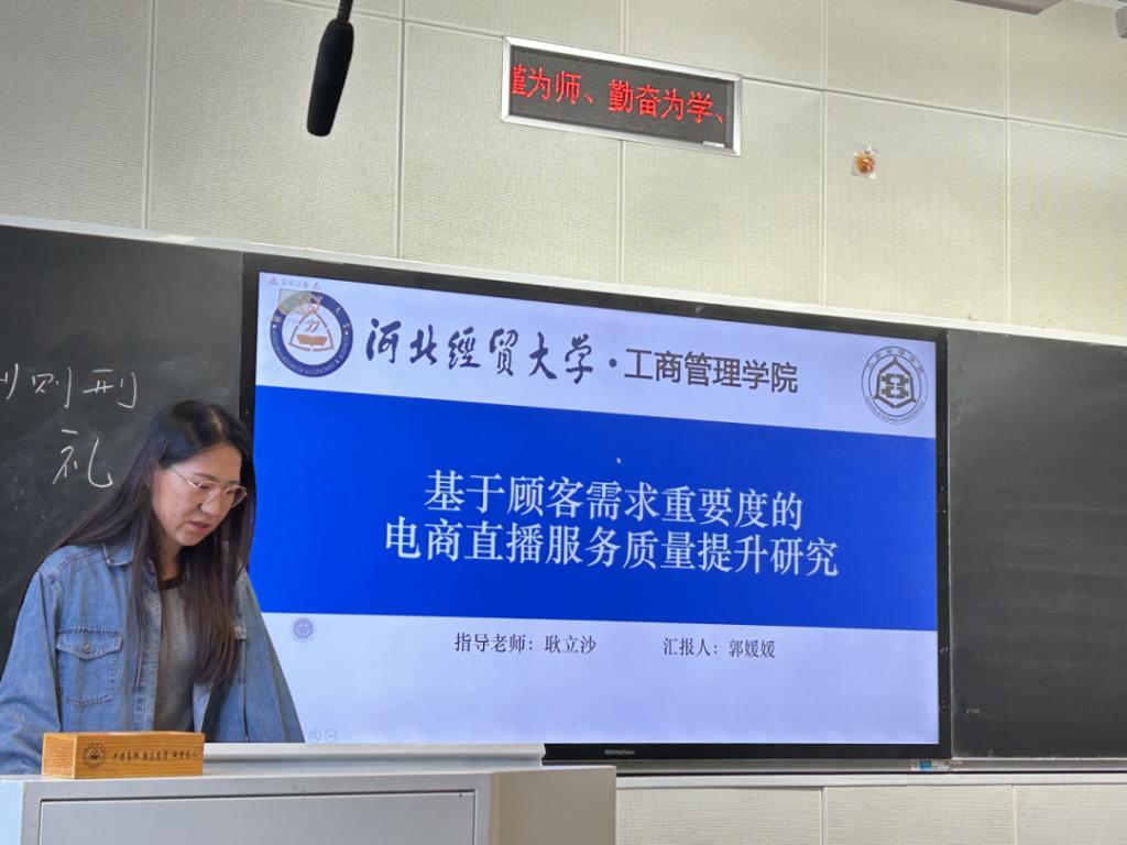 汇报人郭媛媛以“基于顾客需求重要度的电商直播服务质量提升研究”为题,电商直播行业蓬勃发展,服务失败的现象仍层出不穷,提出本文的研究内容。通过计算顾客需求最终重要度、构建电商直播服务质量提升模型,淘宝直播案例分析,得出针对顾客需求来提高电商直播的服务质量。