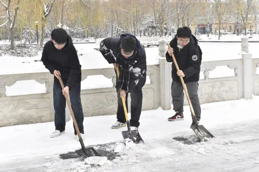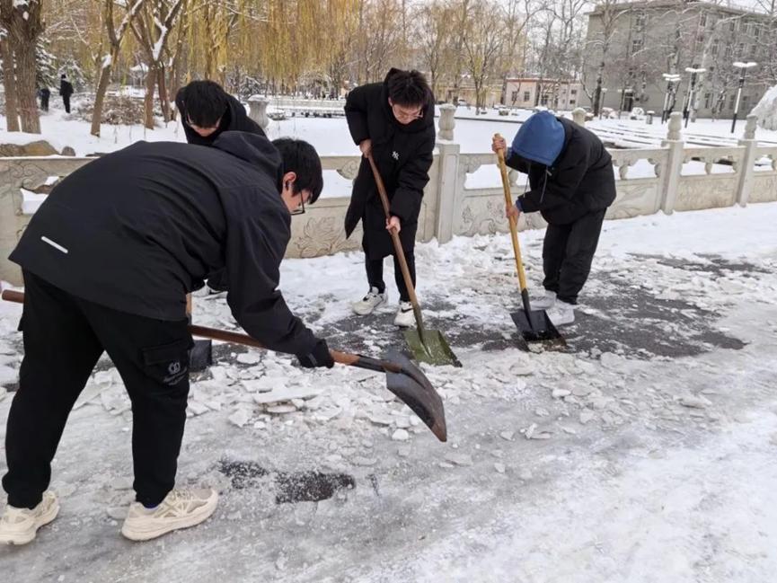 为促使道路通畅,消除积雪带来的校园安全隐患,保障同学们的出行安全,锻炼学生们的团结协作能力,培养劳动奉献精神,彰显新时代大学生的精神风貌。12月15日,必赢官网学生积极参加“以劳树德,知行合一”扫雪除冰活动。