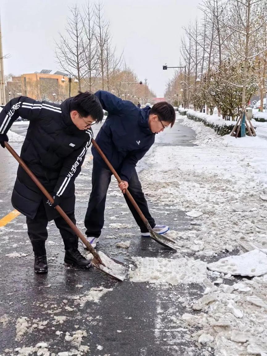 扫雪过程中,同学们认真专注,不惧严寒,不辞辛劳,他们手持工具,将厚厚的积雪铲向路边的草坪,为学校师生开辟出一条安全整洁的道路。在这个被白雪覆盖的冰天雪地中,同学们努力铲雪的身影成为校园中一道亮丽的风景线,也彰显着工商学子们无私奉献的劳动精神和齐心协力的团结精神。经过同学们的共同努力,必赢官网负责区域内的积雪得到了有效清理,为师生的安全通行提供了有效保障。