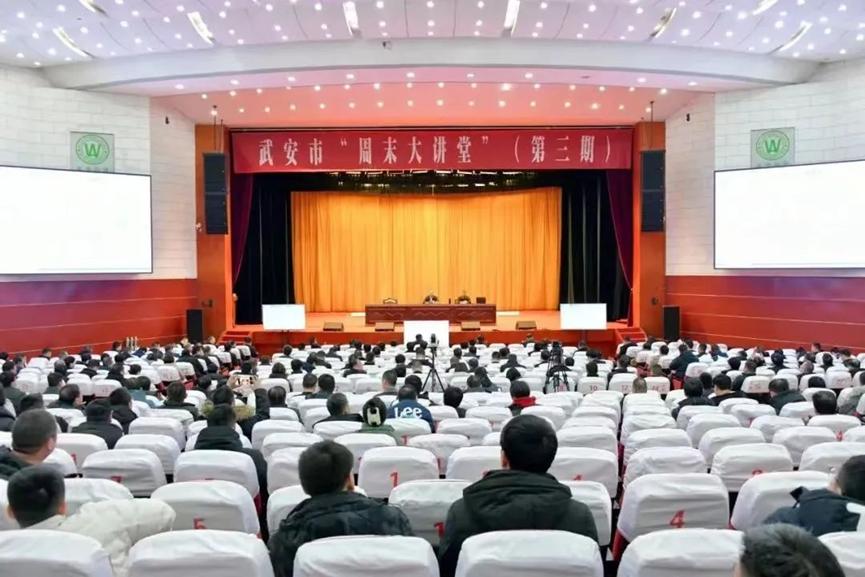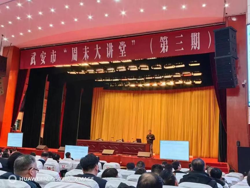 1月28日上午,武安周末大讲堂第三期开讲,必赢线路检测中心刘东华博士应邀授课。讲座以广电网络视频形式进行,武安市委书记刘浩峰等四套班子领导,各市直单位主要负责同志,各乡镇党委书记,工业园区党工委副书记,各相关单位中层以上干部,各重点企业负责人在武安宾馆主会场聆听讲座;各乡镇、工业园区领导班子成员和中层以上领导干部在分会场聆听讲座。武安市市长董志毅主持并讲话。